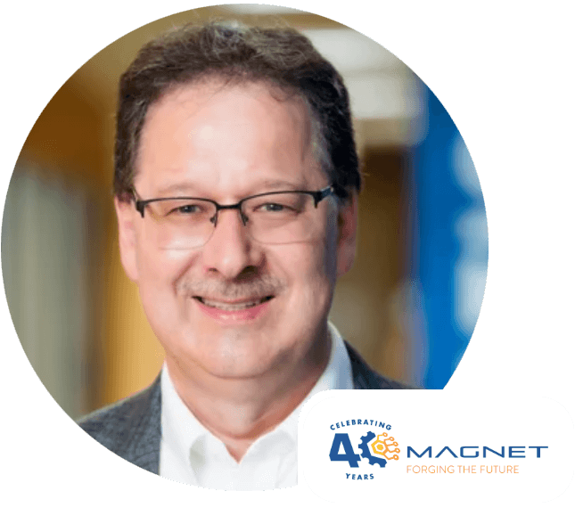 Michael O’Donnell has 30 years of experience in engineering and manufacturing consulting, with most of that time spent at MAGNET. A Master Six Sigma Black Belt and licensed Professional Engineer, he orchestrates new consulting methods in technology, transformation, innovation and employee and team development for manufacturers in Northeast Ohio. Prior to MAGNET, Michael held positions in R&D, management, manufacturing operations and Lean, and continuous improvement in a variety of industries including automotive, consumer products and chemicals. His experience includes Industry 4.0, automation, assembly, chemicals, polymers (molding, fibers and films) and steel processing. Michael holds a Bachelor of Science in Chemical Engineering from the University of Michigan and an MBA from the University of Richmond.